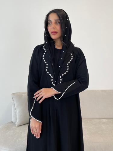 Z270 / قماش كريب كوبرا وتطريز اسود مع كرستال