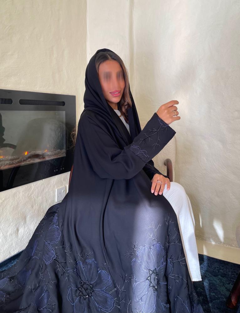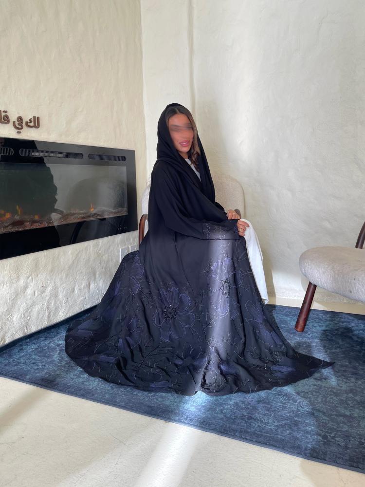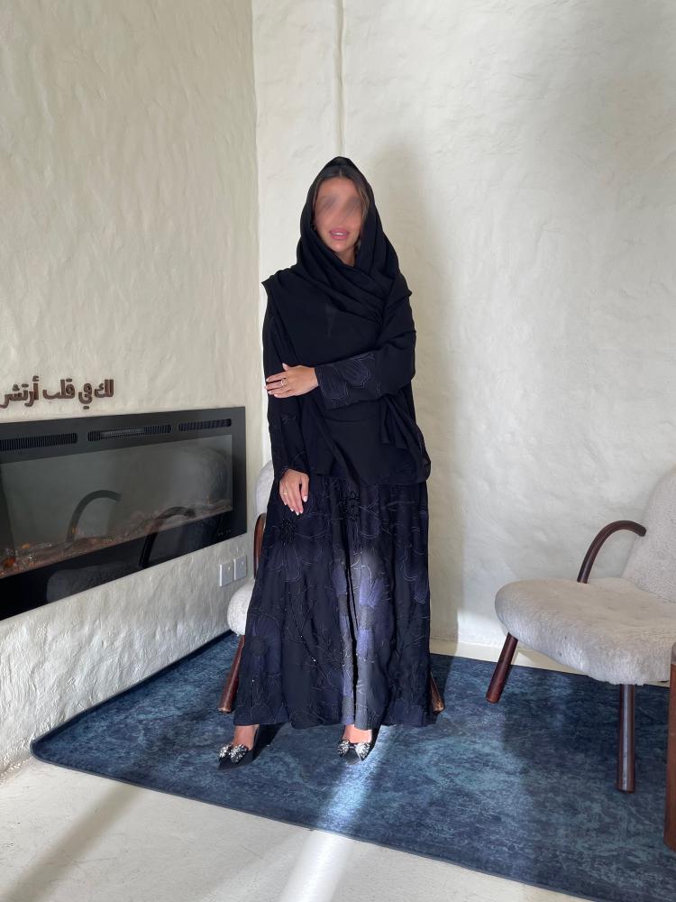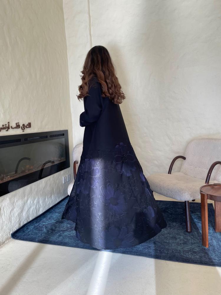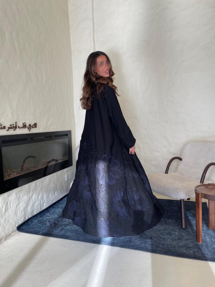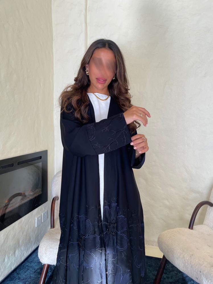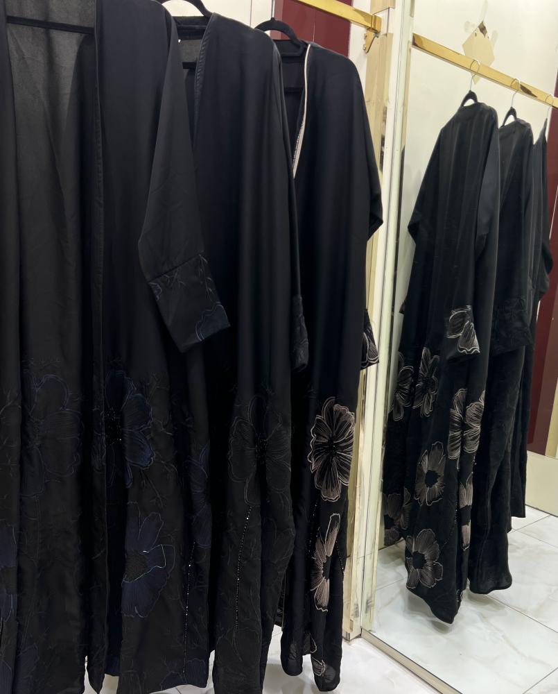 Z221 / قماش مخمل اسود مع ياقه ورسم يدوي بالخلف