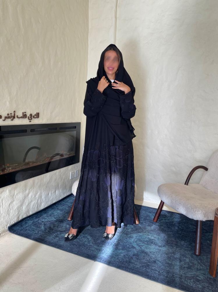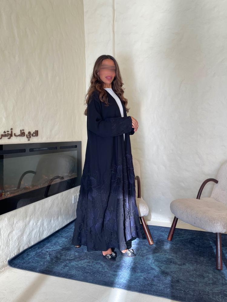 Z301 / قماش كريب وتطريز كمبيوتر كحلي مع كرستال امام وخلف