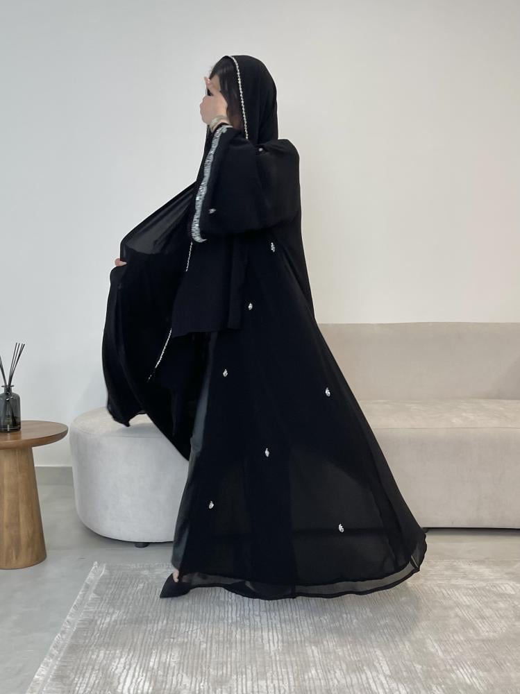 Z265 / قماش دبل شيفون مع شك خرز متوفرة ابيض واسود