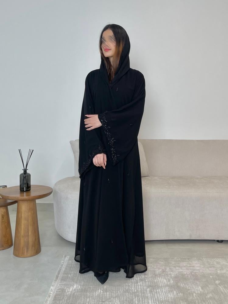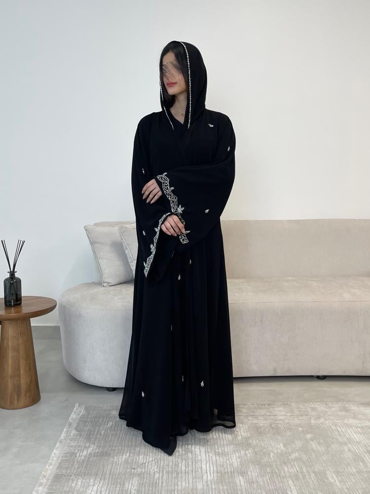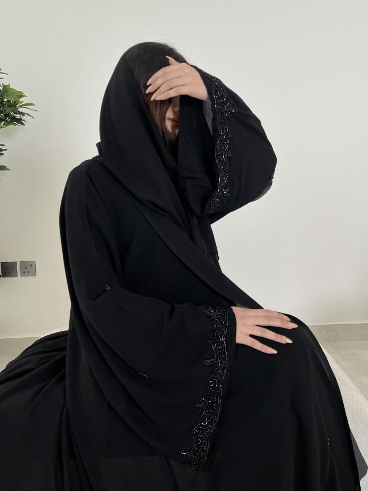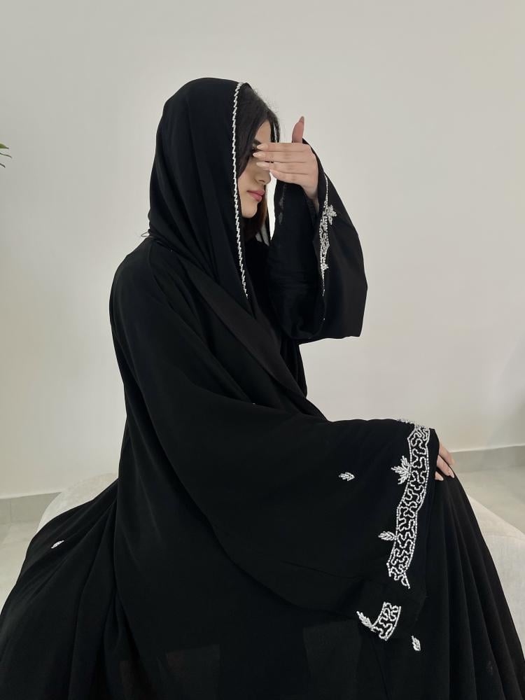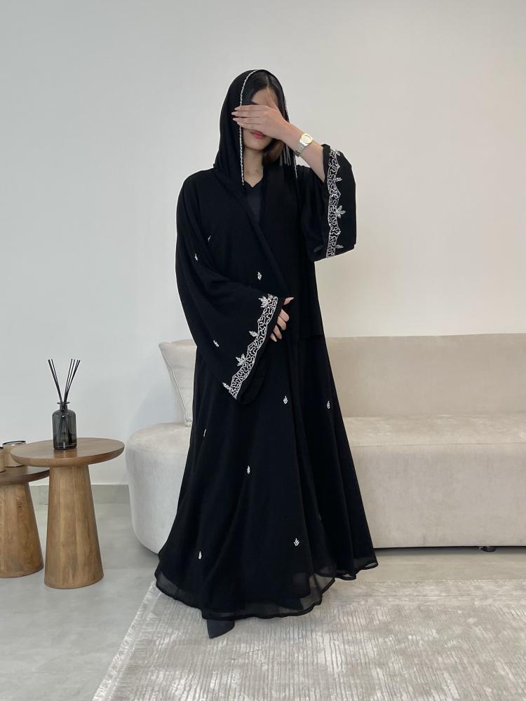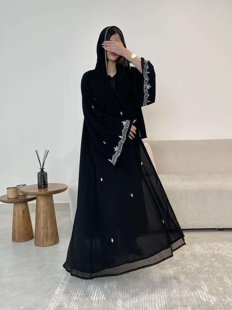 Z296 / قماش كريب وشيفون مطرز بالجوانب والاكمام والطرحه