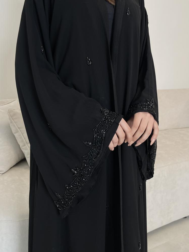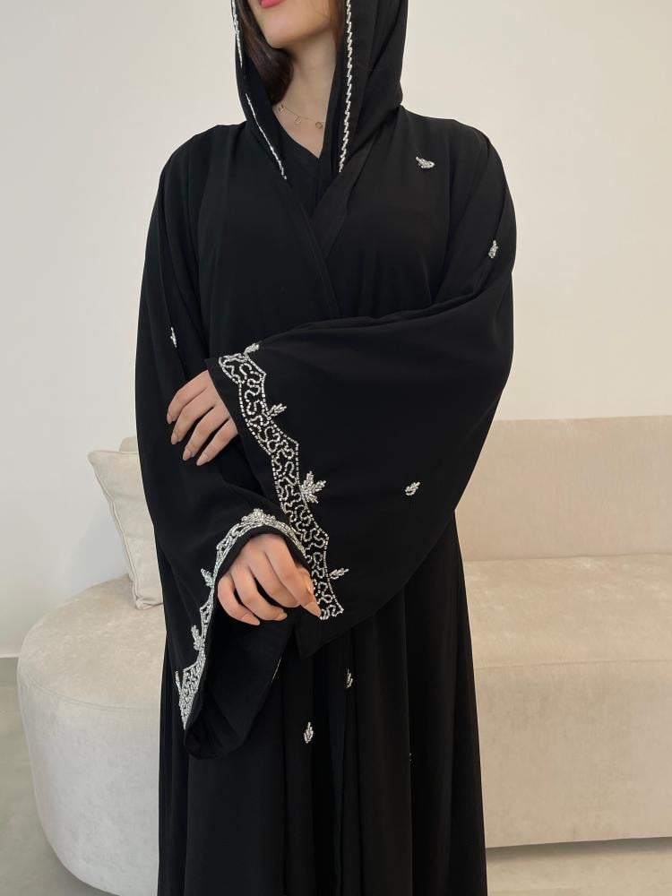 Z269 / قماش كريب سراميك واكمام تل مطرز مع كرستال