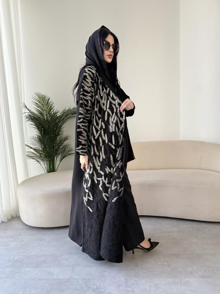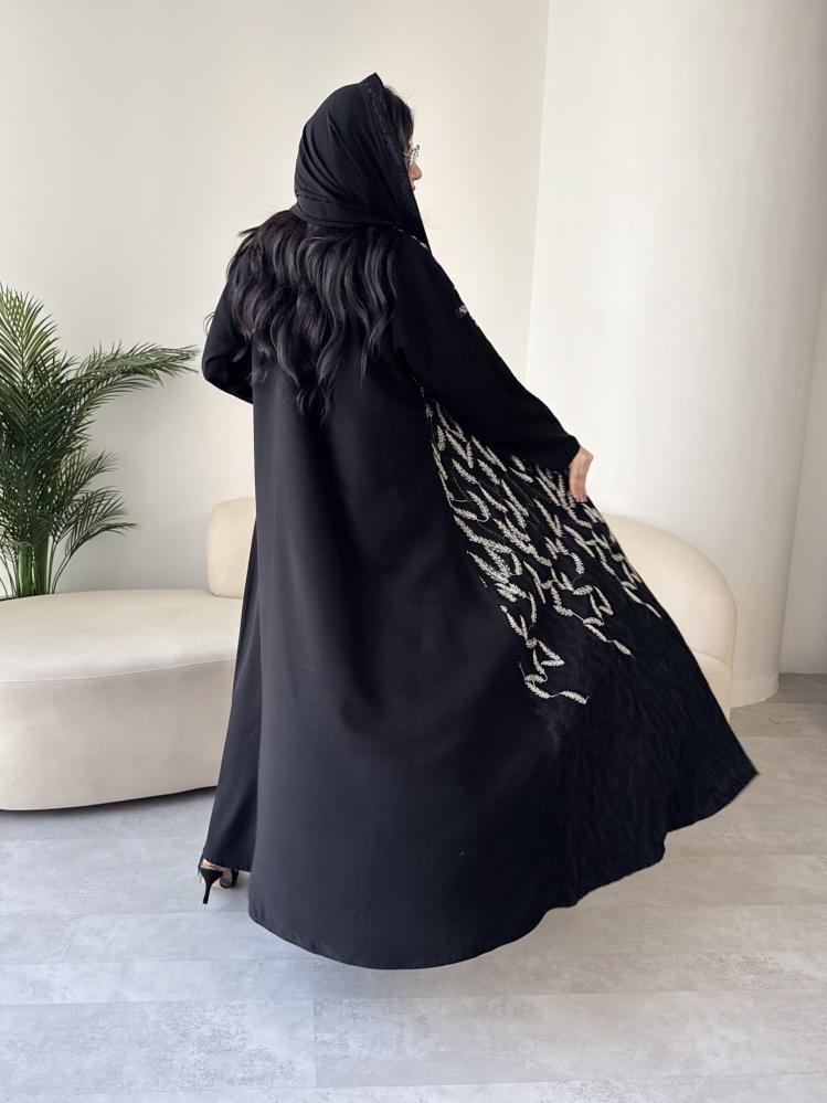 Z284 / قماش كريب مينيمات مع جاكار وكسرات اسفل العباية