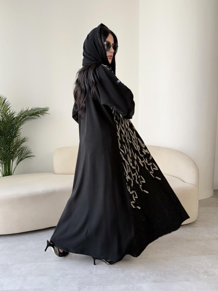 Z336 / قماش كريب كوبرا وتطريز اسود طرف الاكم وبالامام