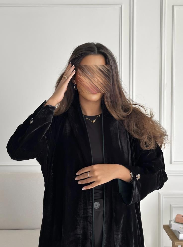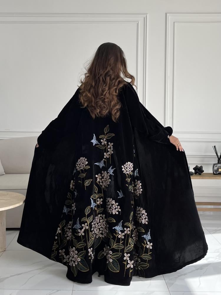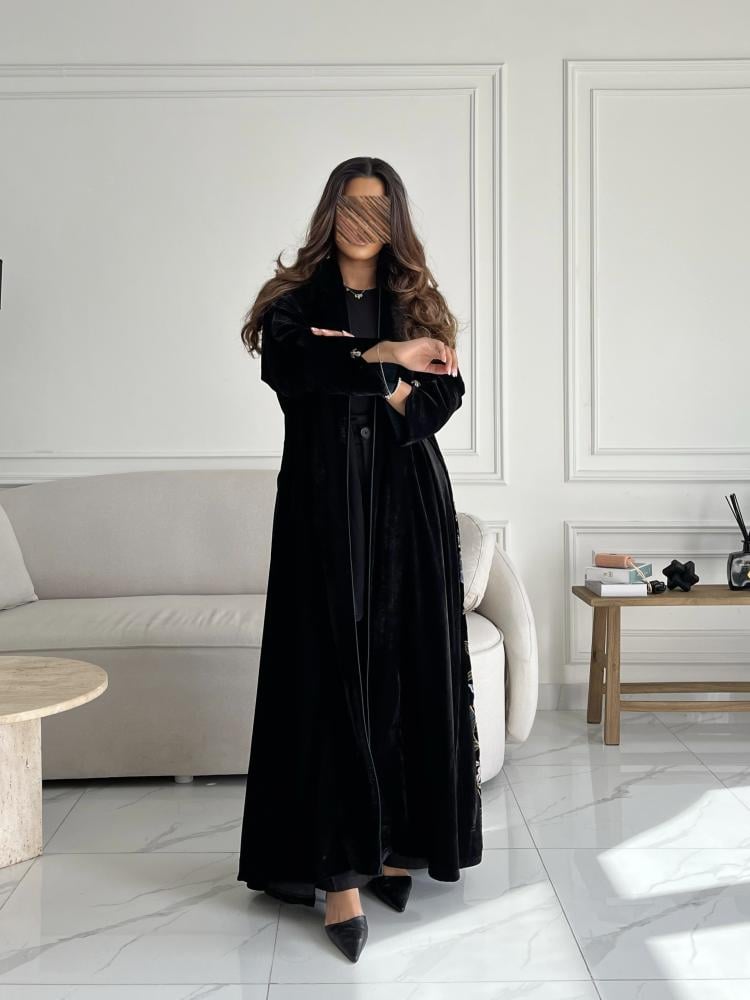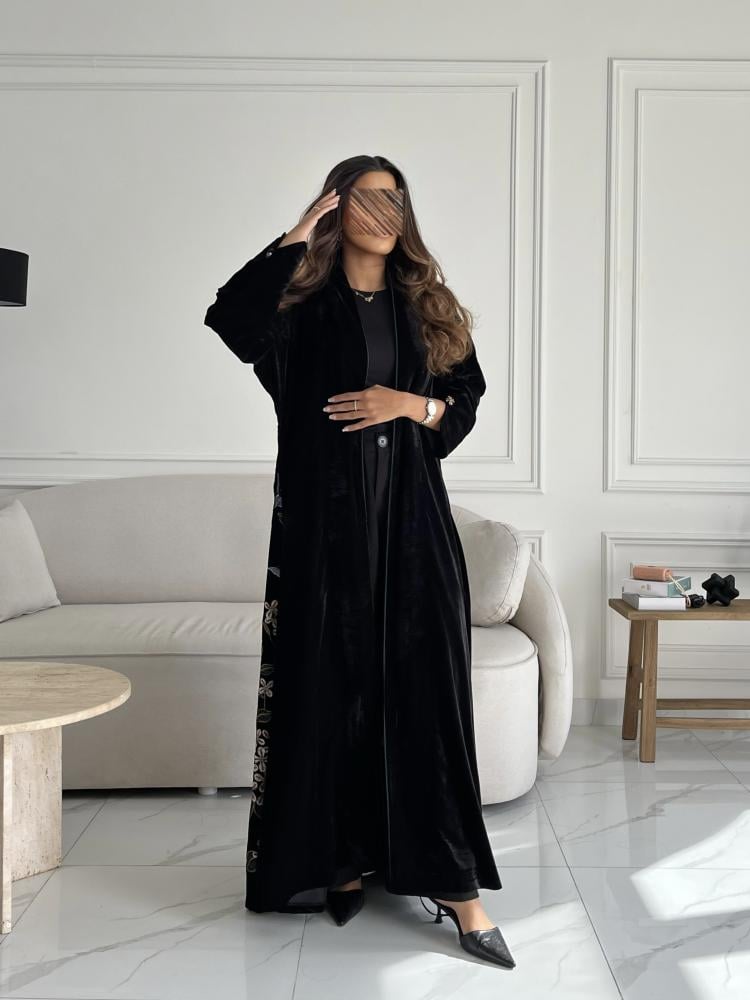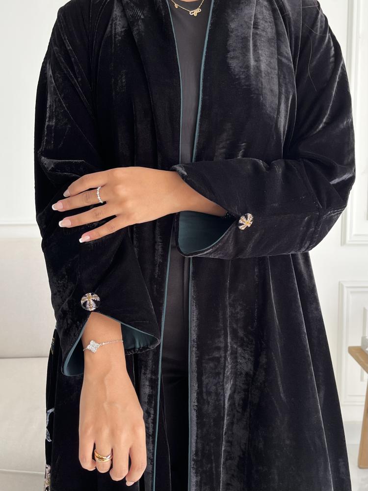 Z226 / قماش مخمل اسود وتطريز كمبيوتر بالخلف