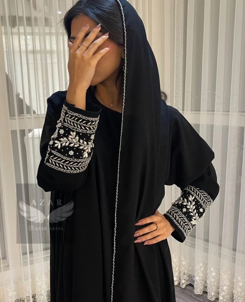 Z335 / قماش كريب كوبرا وتطريز اسود بالكم و عالجنب مع كسرات