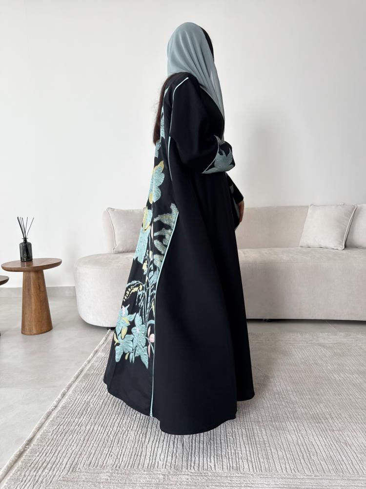 Z227 / قماش مخمل اسود مع ياقه ورسم يدوي