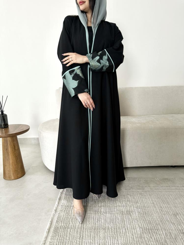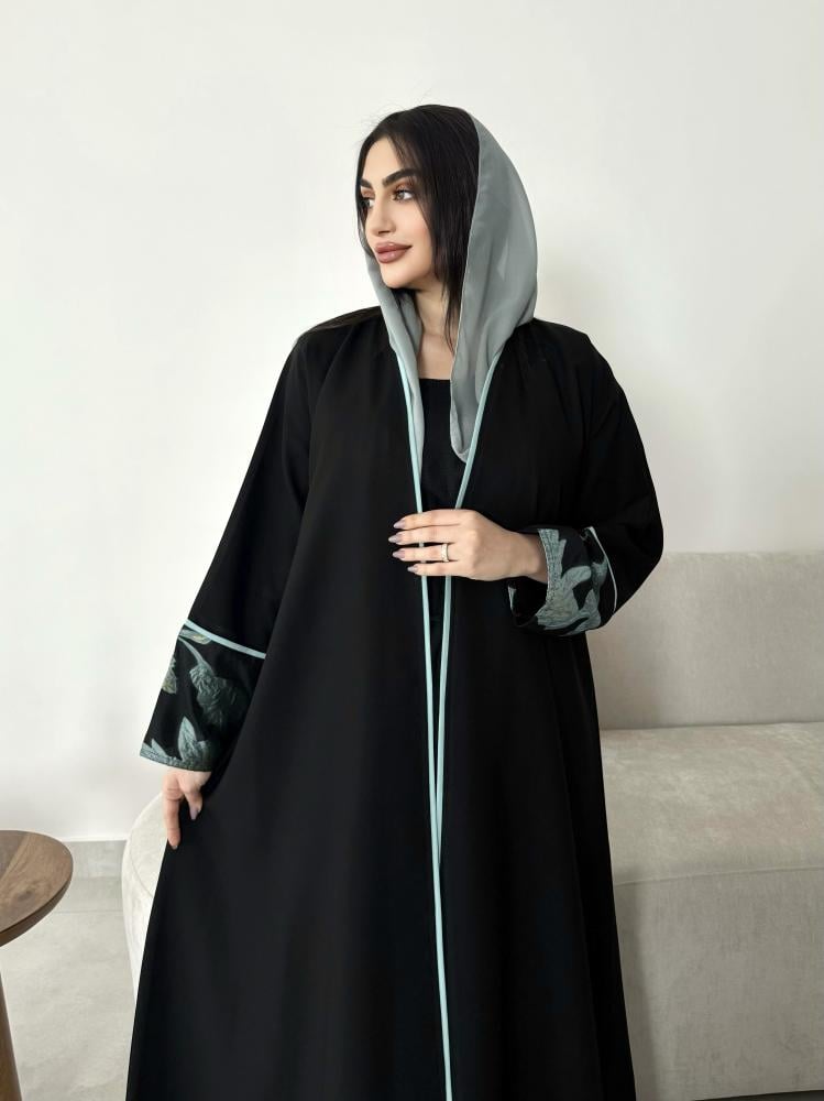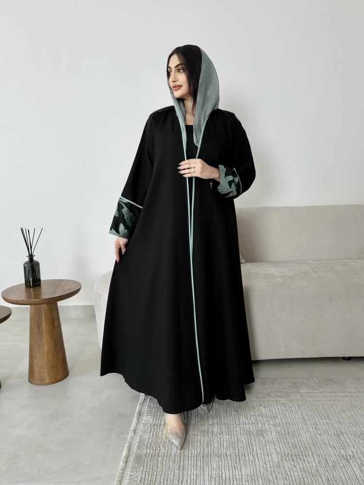 Z296 / قماش كريب وشيفون مطرز بالجوانب والاكمام والطرحه