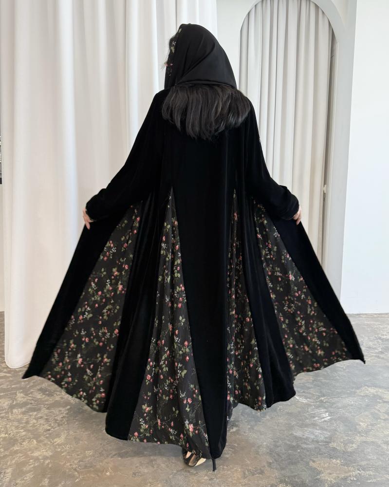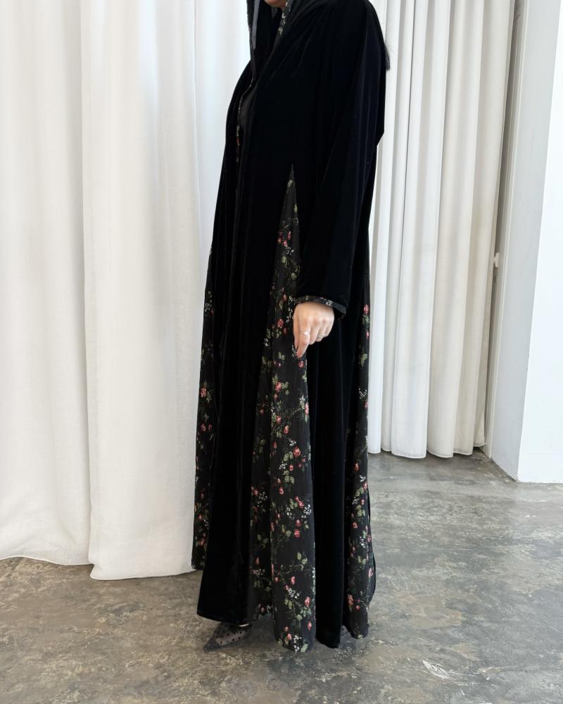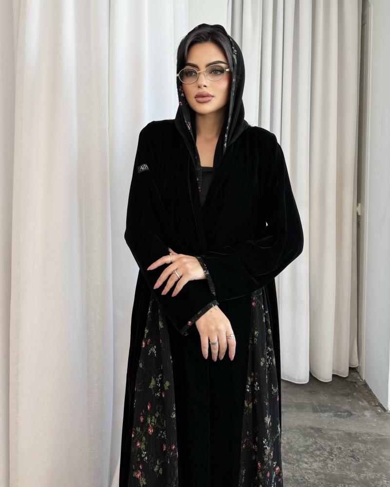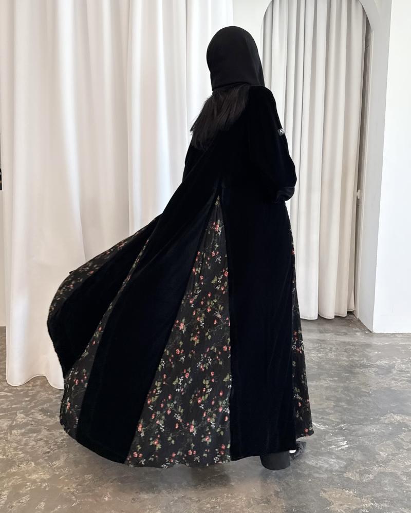 Z221 / قماش مخمل اسود مع ياقه ورسم يدوي بالخلف