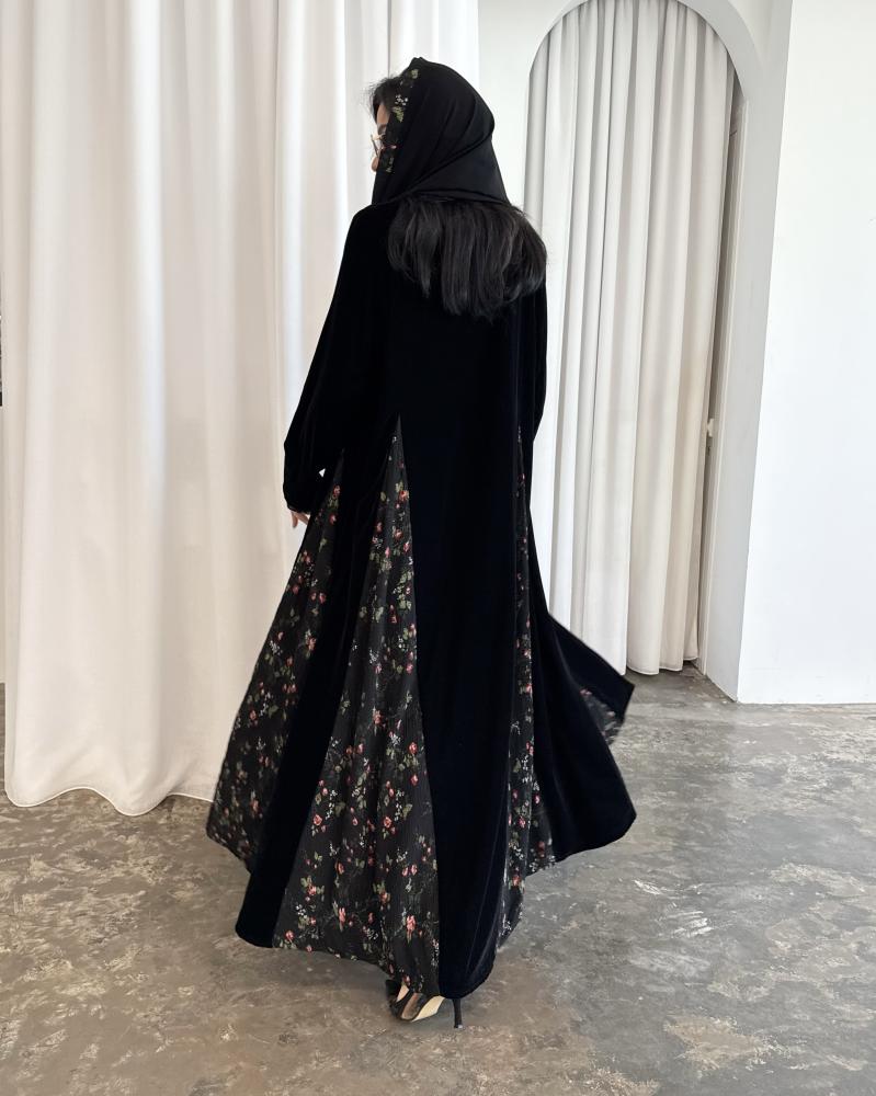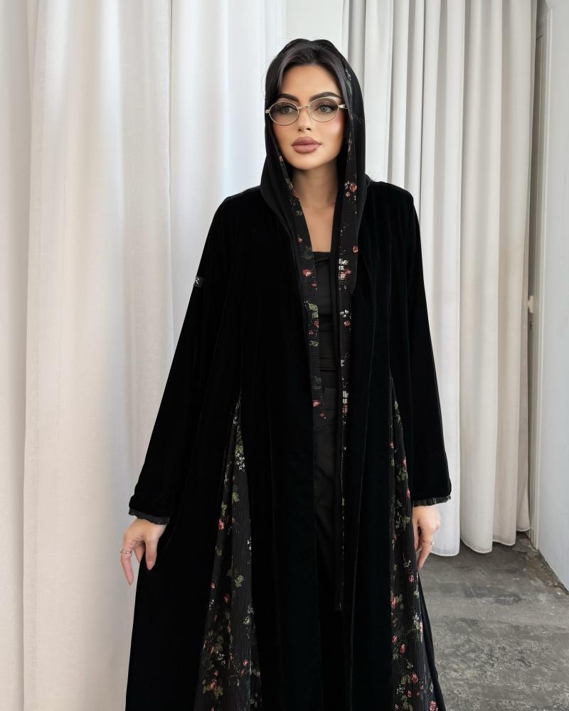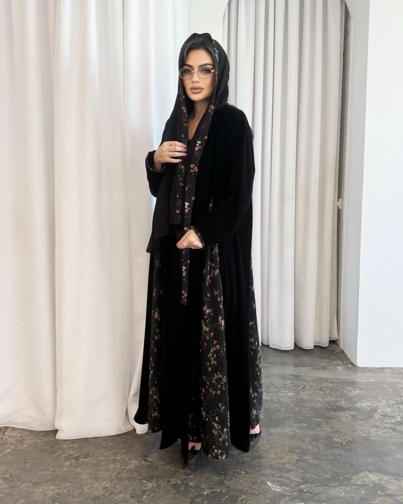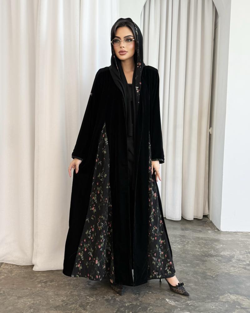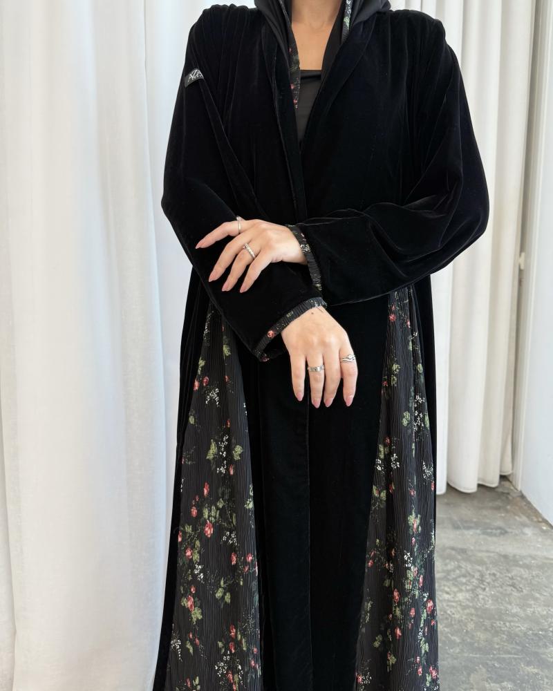 Z221 / قماش مخمل اسود مع ياقه ورسم يدوي بالخلف