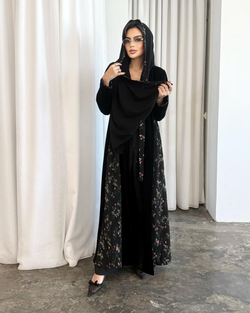 Z348 / قماش مخمل اسود ورسم يدوي امام وخلف جنب واحد