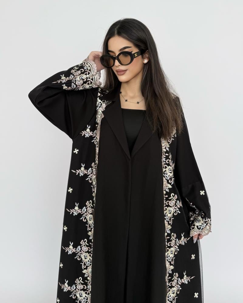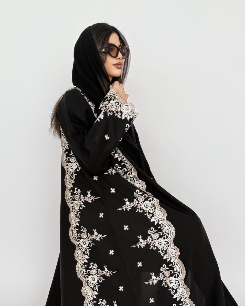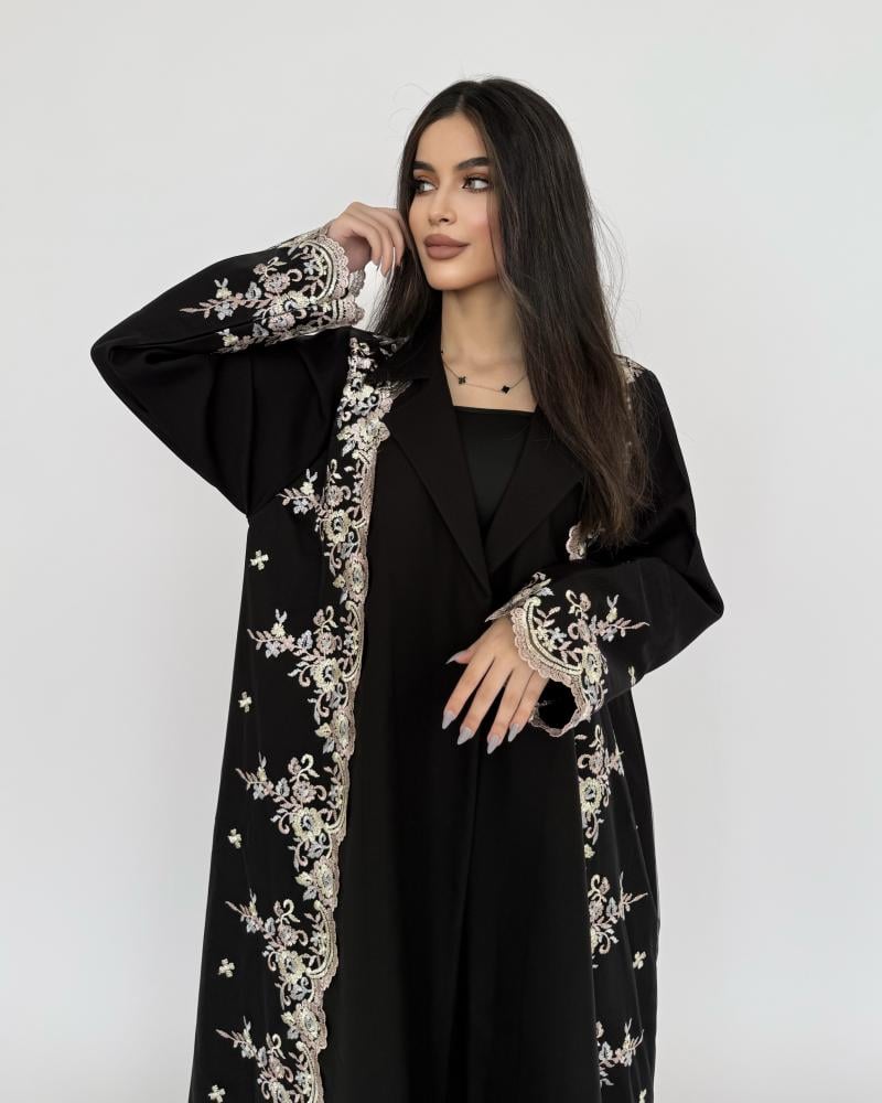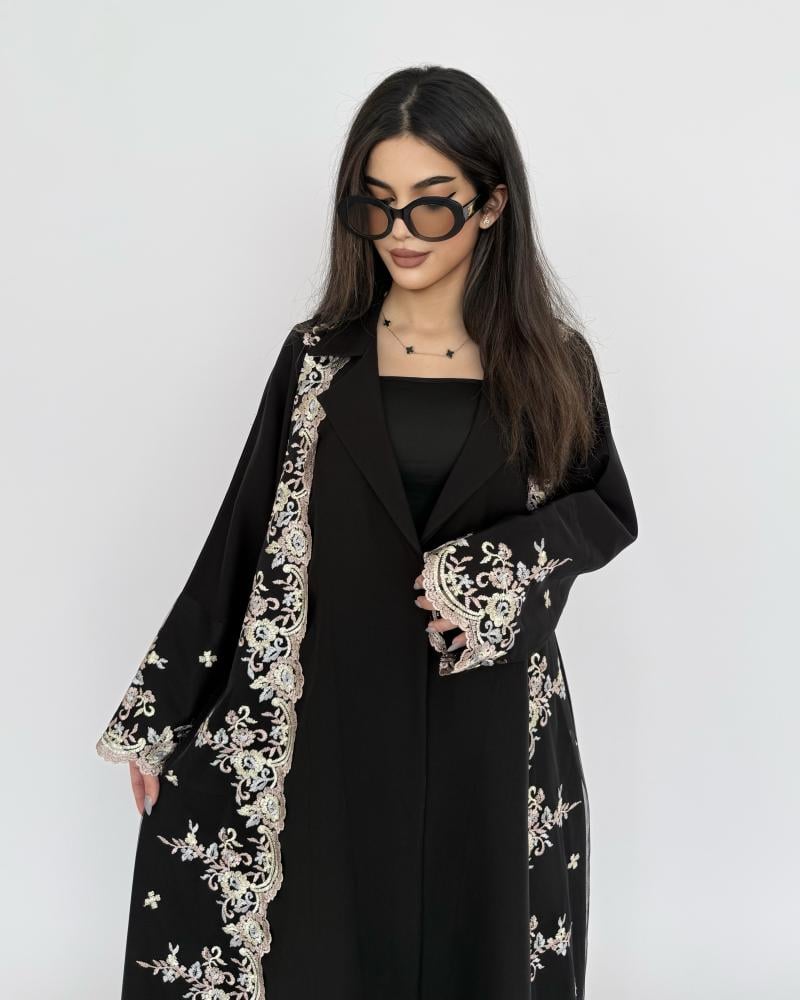 Z328 / قماش كريب لمياء وتطريز اسود عالصدر والاكمام