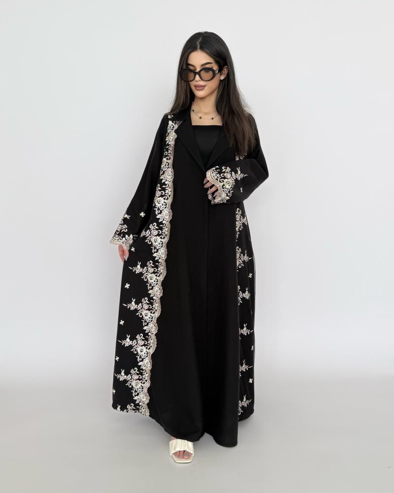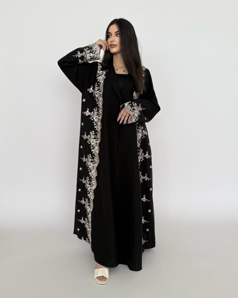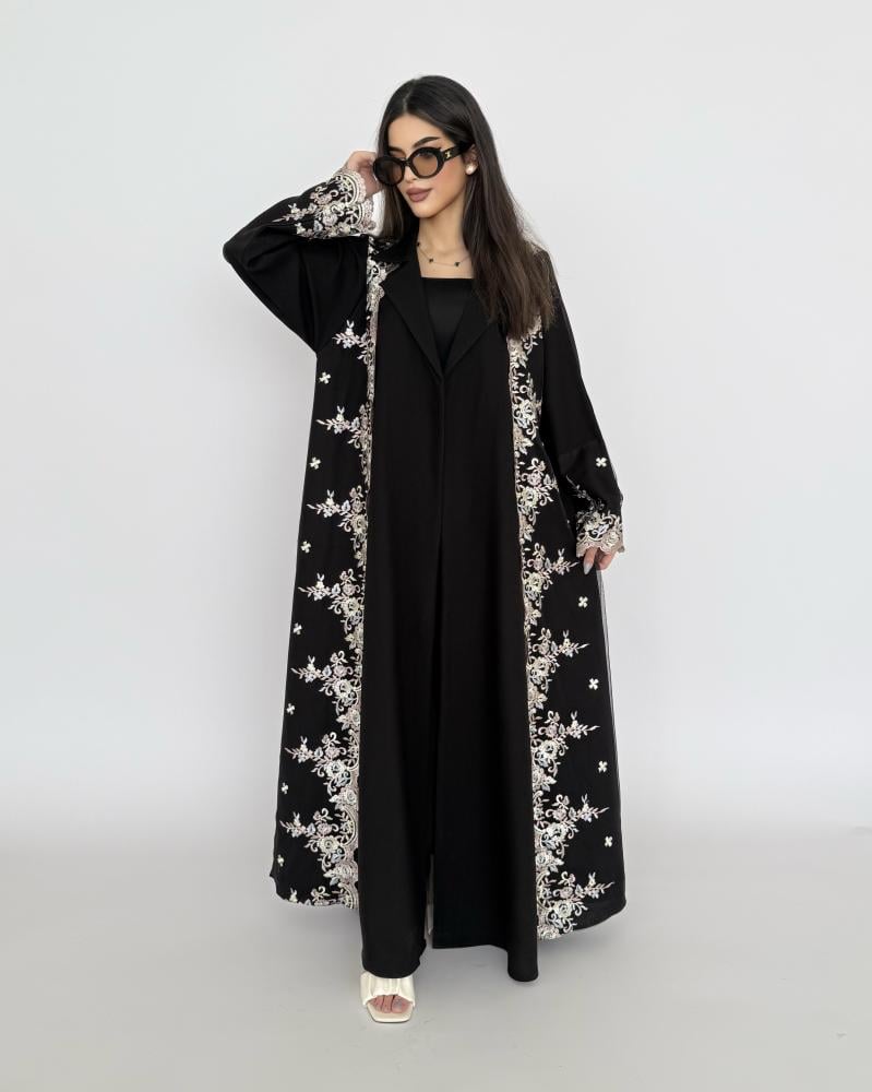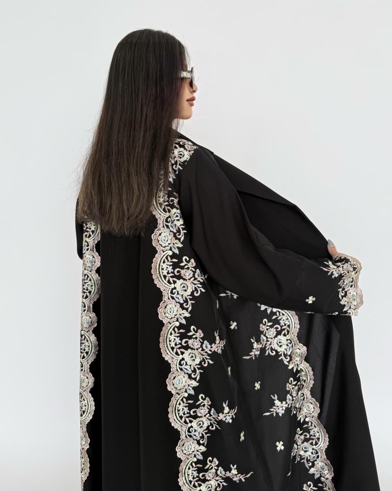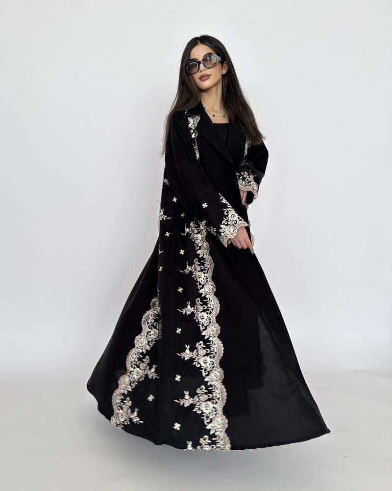 Z328 / قماش كريب لمياء وتطريز اسود عالصدر والاكمام