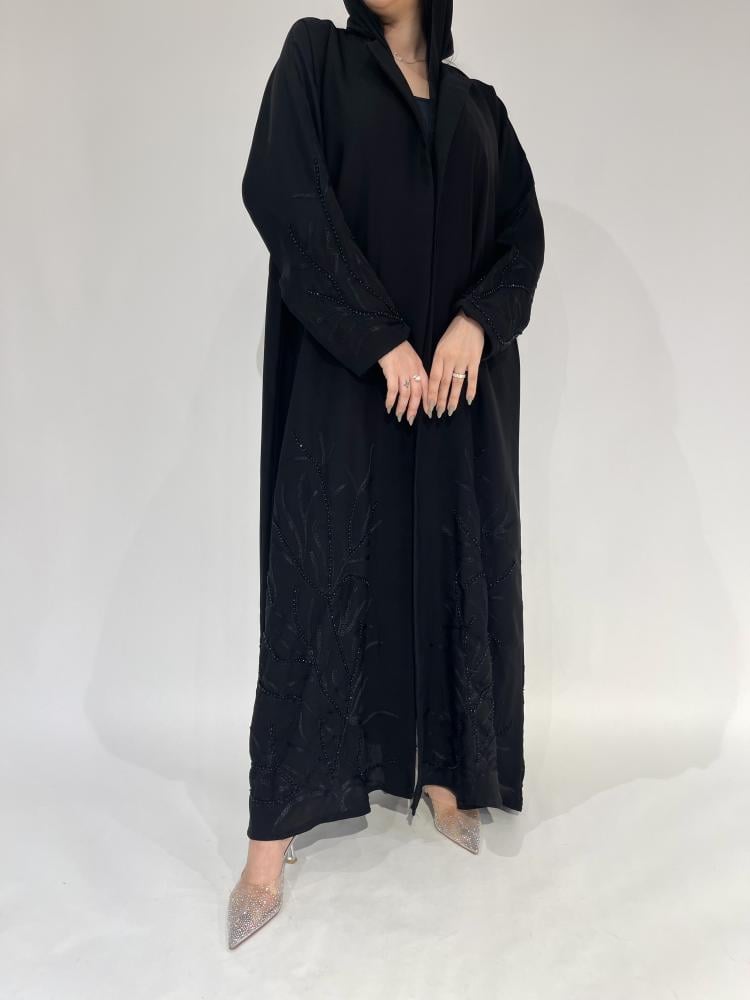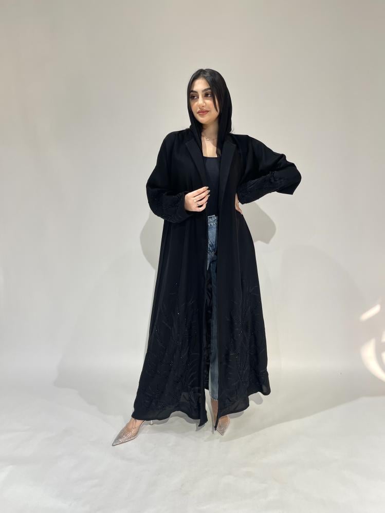 Z202 / قماش كريب خفيف وتطريز مع خرز بالاسفل والاكمام