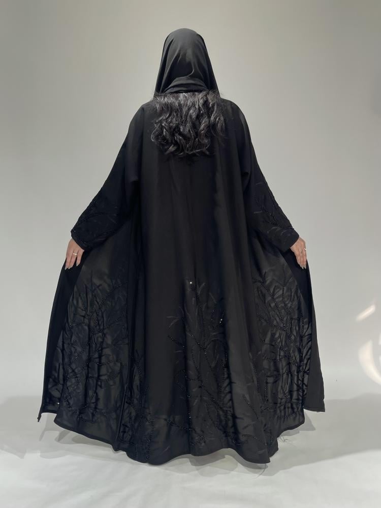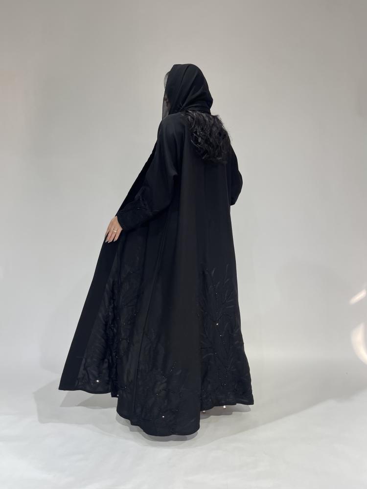 Z221 / قماش مخمل اسود مع ياقه ورسم يدوي بالخلف