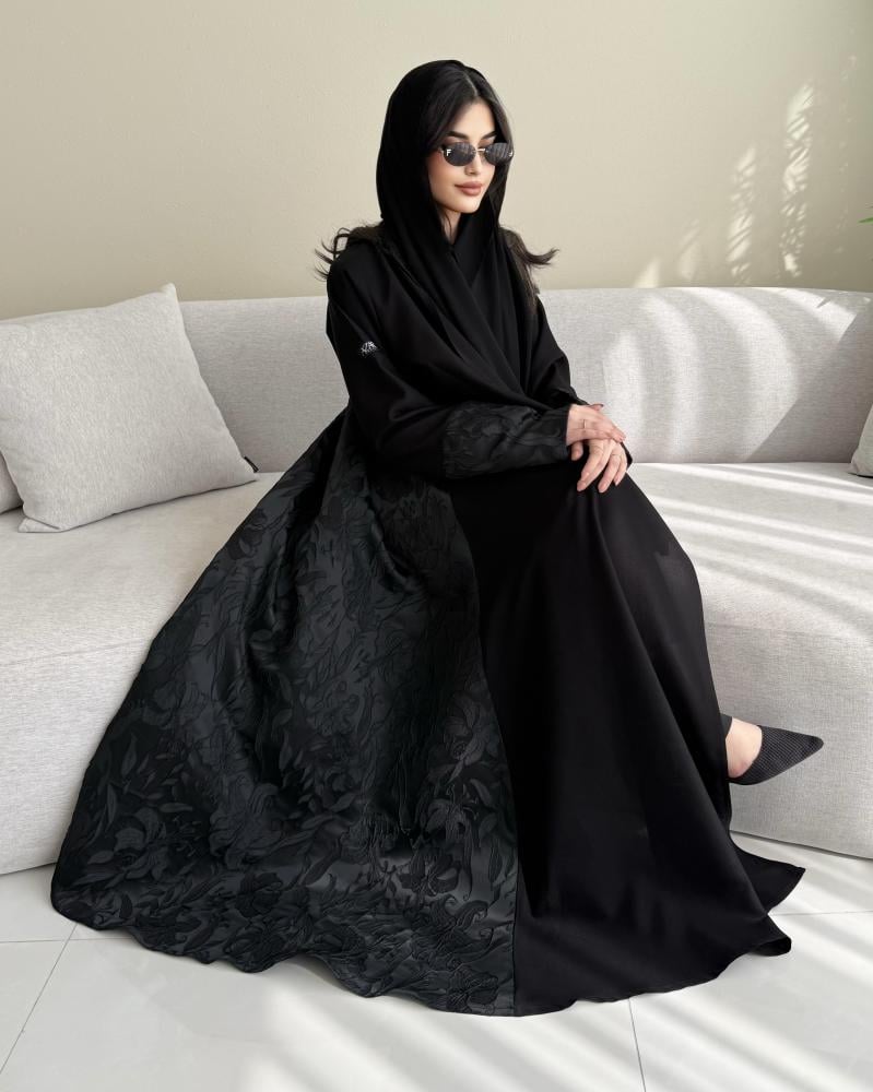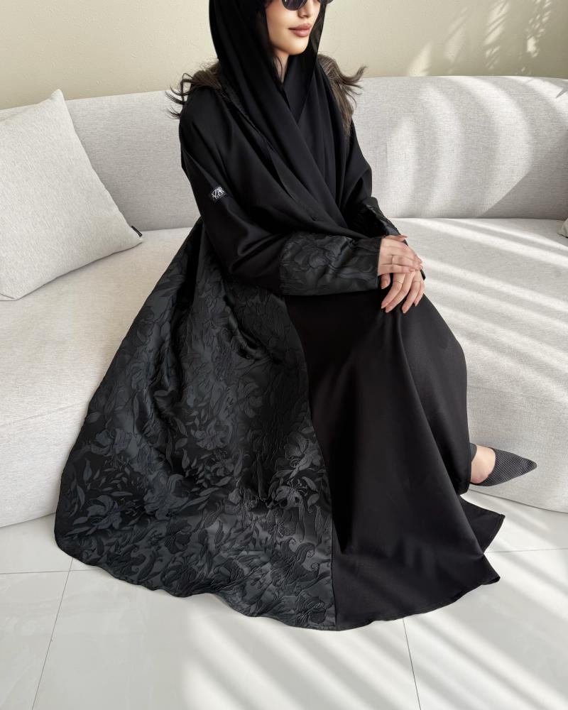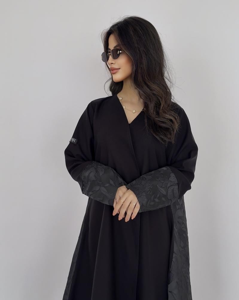 Z321 / قماش كريب مينيمات وتفته مشجر بالخلف وطرف الكم