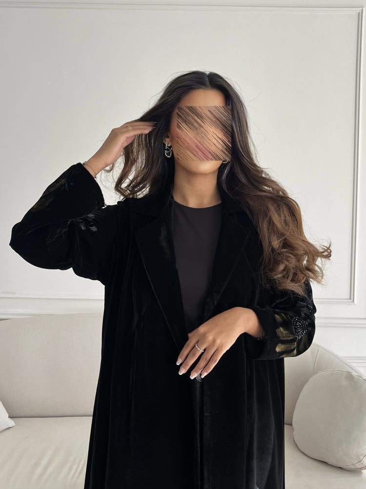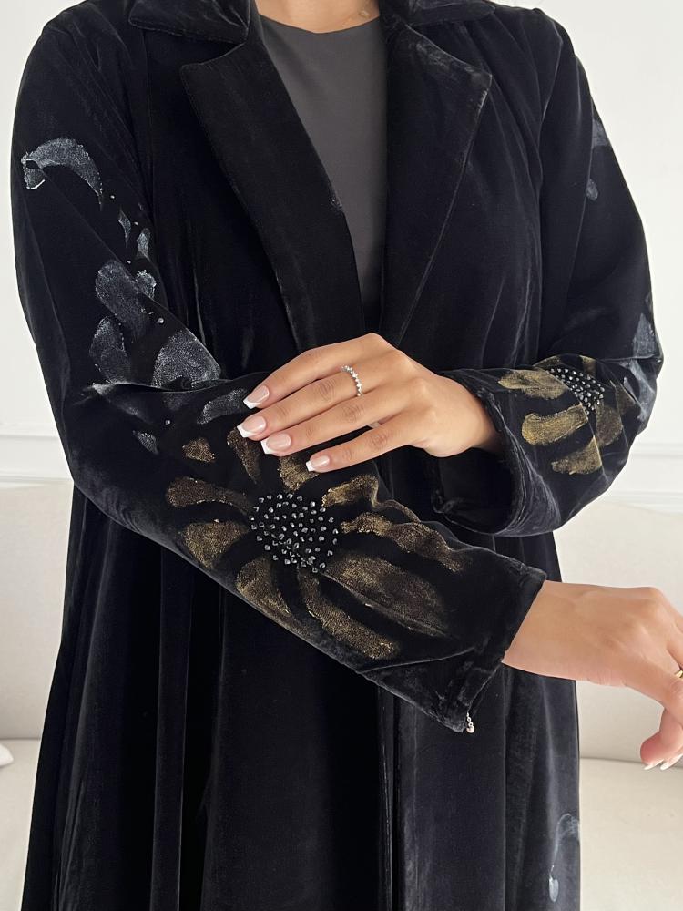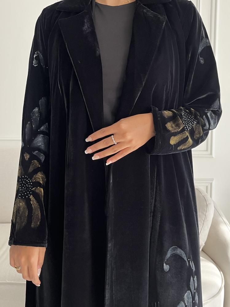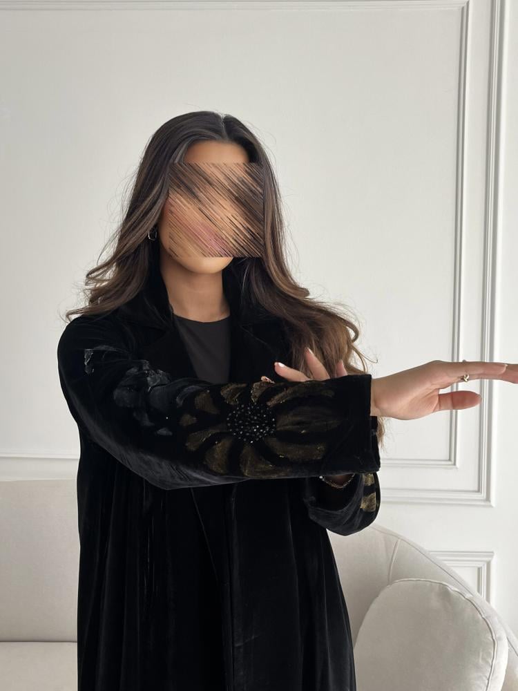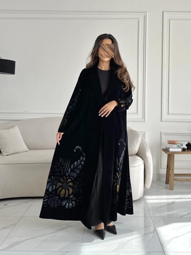 Z227 / قماش مخمل اسود مع ياقه ورسم يدوي
